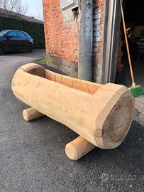 Fioriera realizzata con tronco di cedro scavato con motosega.