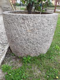 Fioriera di pietra di grosse dimensioni. H cm 78, diametro max esterno cm 85, diametro max luce cm 70. Ritiro a carico acquirente (con gru e automezzo adeguato).