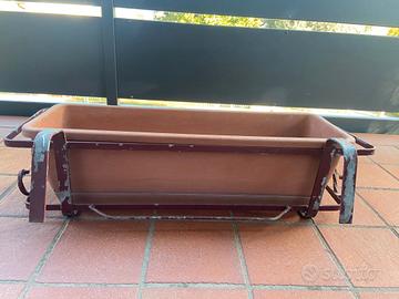 Vendo una portafioriera in metallo con relativa fioriera in plastica. Lunghezza 67,5cm Larghezza 23,5cm Altezza 16,8cm