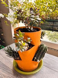 Bellissima fioriera , molto particolare nel design. Piena di piantine grasse, in fiore. Ideale come centro tavola oppure Stand alone . Sottovaso in ceramica incluso
