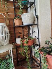 N. 3 fioriere in ferro nero, angolari. Necessitano di una leggera verniciatura. Ottimo stato. Il prezzo è per cadauna.