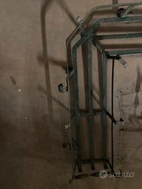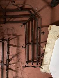 Fioriera in ferro battuto angolare ideale da appendere con ganci con spazio interno larghezza 4 cm. Dimensione della fioriera 107 cm X 107 cm. Profondità interna fioriera per vasi 20 3 cm in alto e 18 cm nella parte bassa. In ogni caso fornisco con vasi in plastica da inserire all’interno.la vernice è di colore marrone ma è un po’ rovinata quindi consiglio di riverniciarle nel colore desiderato. La fioriera è stata realizzata a mano con tutte le saldature fatte artigianalmente. Sono presenti anche degli agganci alternativi (vedi ultima foto). In un altro annuncio ci sono anche due fioriere fatte uguali ma dritte.