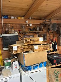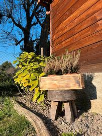 Vendesi bellissima fioriera in legno realizzata a mano, caratterizzata da una particolare finitura effetto legno bruciato che ne esalta le venature naturali. Perfetta per dare un tocco rustico e accogliente al tuo balcone, giardino o portico. Il design robusto e lo stile "cassetta della frutta" rivisitato la rendono ideale per ospitare vasi di eriche, piante aromatiche o fiori stagionali (come mostrato in foto). Dettagli del prodotto: Materiale: Legno massiccio trattato. Stile: Rustico / Shabby Chic / Industrial. Dimensioni: 43 cm (lunghezza) x 21 cm (larghezza) x 14 cm (altezza). La fioriera è molto versatile: può essere utilizzata sia poggiata a terra (come su un ceppo o muretto) sia su un tavolo da esterno. Realizzata completamente a mano con tavole ricavate da bancali epal Disponibili 10 pezzi