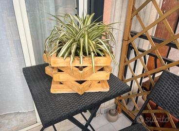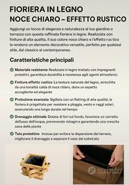 Questa elegante fioriera in legno, realizzata con finiture di alta qualità, porta un tocco di natura e rusticità in ogni angolo del tuo giardino o terrazzo. Il suo colore noce chiaro, arricchito da un effetto rustico, la rende un elemento decorativo ideale per ambienti esterni, che si adatta facilmente a qualsiasi stile, dal classico al contemporaneo.