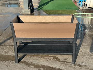 Fioriera realizzata con effetto DecoCoat, rifinitura effetto legno, ideale per la coltura di piante e ortaggi, grazie al vassoio forato per la riserva delle irrigazioni e il tappo per il drenaggio di acqua. Resistente agli agenti atmoscerici non scolora