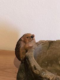 Fioriera porta vaso a forma di tronco d'albero con due ricci, in resina sintetica d'alta qualità resistente alle intemperie, adatta sia per l'arredamento interno che per il giardino, rifinita con dettagli realistici che imitano la corteccia del tronco e la texture degli aculei dei ricci.
