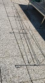 FIORIERE portavasi in acciaio inox con ganci regolabili, fatte su misura, dimensioni 240x20x17 (LxPxA), vasi compresi (8 pezzi disponibili) L'oggetto si trova a Punta Marina (RA)