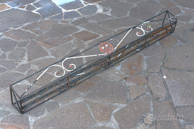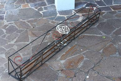 Fioriere da giardino in ferro battuto molto robuste e pesanti fatte da artigiano, eventualmente da riverniciare, ma belle anche così. Dimensioni in centimetri: la prima quella con i ganci per appendere 91x23 altezza18; le altre due senza ganci, 150x14 altezza 18 e 150x14 altezza 13, il porta vaso rotondo altezza 42 diametro 19.chiedo 15 euro ciascuna per le rettangolari e 10 euro per il porta vaso, trattabili se acquisto in blocco. Se le vedete su subito vuol dire che sono ancora disponibili, Non spedibili a causa delle dimensioni, solo ritiro o eventuale accordo per trasporto a mio carico.