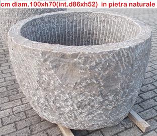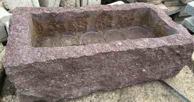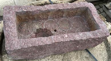 E' scavata da un blocco di porfido naturale autentico, di colore rosso/viola, NON è di cemento, graniglia o polvere di marmo, non soffre il gelo, ideale per esterni.