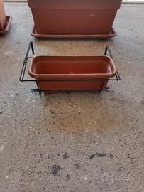 vendo 2 fioriere in plastica cm 80 per 40 e altre 2 piccole con un supporto tutto 30 euro
