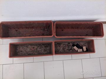 Vendo fioriere di plastica per inutilizzo. 2 da 59.5cm x 19.5cm 2 da 49 cm x 18 cm Tag: fioriera, giardino, porta fiori.