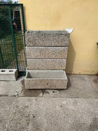 Vendo per rinnovo spazio esterno splendide fioriere e vasi in cemento, estremamente resistenti e ideali per dare un tocco curato e senza tempo al tuo giardino, terrazzo o vialetto. Si tratta di elementi di alta qualità, indistruttibili e capaci di resistere a qualsiasi intemperie senza rovinarsi. Modelli disponibili: Fioriere grandi in ghiaino lavato (Rettangolari): perfette per creare siepi o delimitare spazi. n° 6 pz , misure: L 80, H 25, P 30 cm Vasi quadrati in ghiaino: ideali per piante singole o angoli verdi. n° 2 pz misure: L 40,H 42, P 40 cm. Fioriere in cemento liscio/scanalato: linea più essenziale e moderna. n° 3 pz Stato: Gli articoli sono usati ma in ottime condizioni strutturali (senza crepe passanti). Misure 2 pz da , L 100, H 35; P 32 cm. 1 pz, L 100, H 40, P 32 cm. Prezzi per acquisto singolo: Fioriere rettangolari grandi: € 35 cad. Vasi quadrati/medi: € 20 cad. Fioriere cemento liscio: € 15 cad. SUPER OFFERTA PER IL BLOCCO COMPLETO: Se prendi tutto il set (tutti i pezzi visibili in foto), il prezzo totale è di soli € 160 anziché oltre € 200! Un vero affare per chi deve arredare una zona esterna completa.