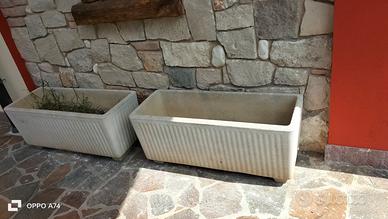 Due belle Fioriere in cemento , belle senza ammaccature , rialzate con scolo dimensioni 1 metro x 50 cm x 50. Molto pesanti. 40 Euro cadauna.