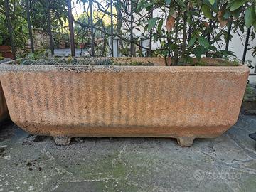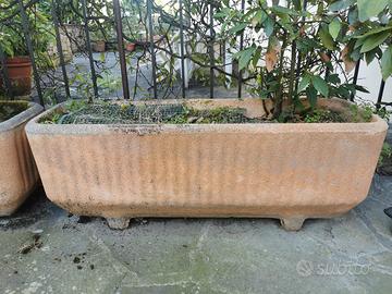 Fioriere in graniglia di marmo e cemento. Colore rosato. Dimensioni: lunghezza 100 cm, larghezza 33cm, altezza 39 cm. Ne ho 7 vendo a 35 euro l'una. Eventualmente con o senza terra, alcune hanno delle piante di alloro e pitosforo, se interessano