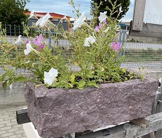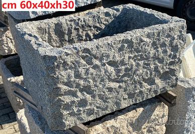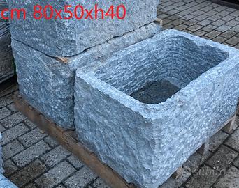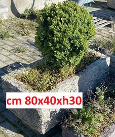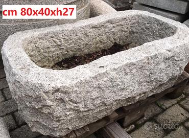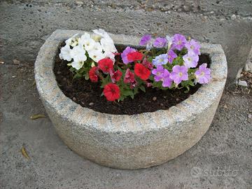 Fioriera interamente scavata dal massello, robusta e pesante, si usa anche come dissuasore, con 1 o 2 fori di scarico acqua.
