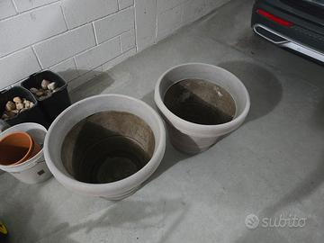 Vendo fioriere in resina effetto pietra in ottime condizioni. Il diametro maggiore è circa 60cm esterno e 50cm interno, alla base fa circa 40cm e 50cm per l'altezza. Preferisco venderle in coppia a 60 euro in tutto. Non spedisco.