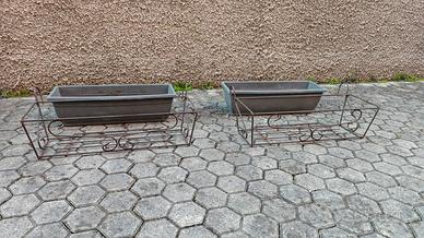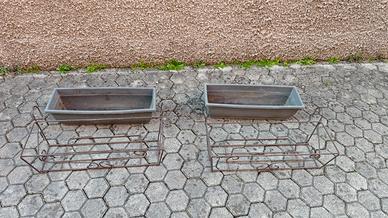 Vendo coppia di fioriere e relativi vasi Le fioriere sono in ferro. I vasi sono in plastica. Sono state usate svariati anni ma sono ancora funzionanti. Manca il sottovaso Vendo perché svuoto il box Non spedisco Se necessario invio altre foto