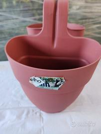 Dimensioni Ø 20.5 x H 26.5 cm Color Rosa in Polipropilene. Sono vasi dal design bellissimo. Si possono combinare piante grandi e piccole. Sono dotati di due fori già predisposti,per essere utilizzati come tenuta supplementare,tramite un fil di ferro o spago a seconda di dove si debbano posizionare,che rendono facile l' aggangio di sicurezza a qualsiasi ringhiera o balcone quando sono appesi.Nuovi mai usati.8 euro l uno, o 30 tutti insieme.