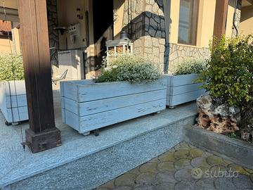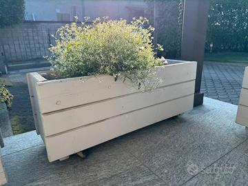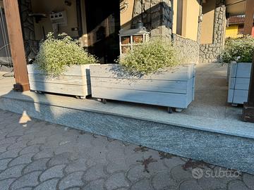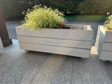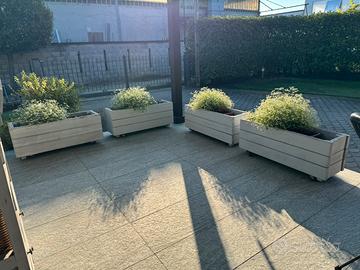 Vendo 4 fioriere in legno marca Pircher, complete di ruote, misura 92,5 x 30,5 cm, altezza 37,5 cm. Vendo in blocco, ritiro a mano, no spedizione