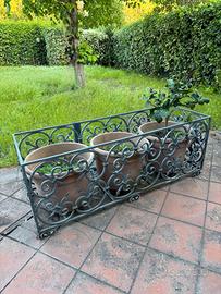 Vendo causa trasloco n.3 fioriere portavasi ornamentali in ferro battuto. Il lotto si articola così: -un pezzo per un singolo vaso di dimensioni 52x52x52 cm -due pezzi per tre vasi e di dimensioni 152x52x52 cm Sono vendibili anche separatamente. Per ogni delucidazione e info, contattatemi senza esitare.