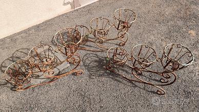 Vendo tre fioriere portavasi in ferro. In ogni fioriera si possono mettere tre vasi. In buone condizioni ma da riverniciare. Consegna a mano in zona Grosseto. Una fioriera 30 euro, tutte e tre 80 euro.