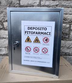 Armadietto fitofarmaci di nostra produzione, rispondente a tutte le caratteristiche richieste dalla normativa di riferimento (materiale ignifugo lavabile, prese d'aria, vaschette di contenimento, chiusura a chiavi, segnalazione di pericolo etc. etc.) viene fornito completo di Certificazione ai seguenti prezzi: