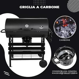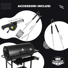 Five-Star Grill&Chill Barbecue a Carbonella - Griglia Barbecue 71×35 cm Cromata, Barbecue da Balcone con Coperchio, Cassetto della Cenere, Termometro, Ruote di Trasporto, BBQ Carbonella XXL, GC0002