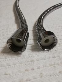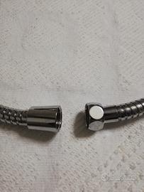 Flessibile Idrobric per doccia, in acciaio inox, lunghezza 1,2 metri. Struttura a spirale metallica che garantisce flessibilità e resistenza alla pressione dell'acqua. Attacco universale. Doppia aggraffatura. Insieme al flessibile ci sono in dotazione le guarnizioni. Contenuto nella scatola originale. In ottime condizioni, mai utilizzato a causa della lunghezza errata (sulla scatola è indicata una lunghezza di 1.5 m, in realtà si tratta di un flessibile con lunghezza di 1,2 m)