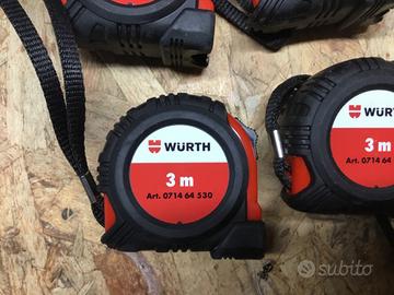 Serie di 4 flessometri Wurth Robust 3 mt art. 0714 64 530. Guscio protettivo in gomma antiurto , larghezza nastro 16 mm . NUOVI