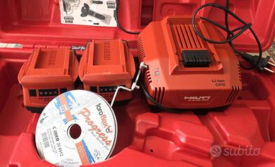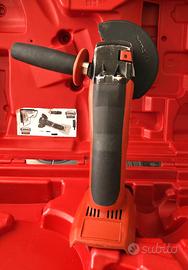 Smerigliatrice angolare a batteria con batteria da 22 V con motore brushless per operazioni quotidiane di taglio e smerigliatura con dischi di diametro fino a 125 mm. 1x 125-A22 1X Sostegno manico. 2x batteria B22/3.3. Li-Ion. 1x Valigetta. 1x Caricabatterie C4/36 -350 2x dischi da taglio. Trattasi di prodotto che è stato utilizzato nel corso degli anni per le applicazioni cui è destinato. Allo stato attuale l’apparecchio si presenta funzionante, sono presenti due pacchi batteria da 22 Volt che ho ricaricato per intero qualche giorno fa; i led (4) di ricarica e di stato residuo di carica mostrano una percentuale ottimale di ricarica. I pacchi batteria però hanno almeno 9 anni e benchè essi non mostrino particolari problemi, andrebbero comunque testate approfonditamente. Da considerarsi che possano essere da rigenerare, considerati età ed utilizzo. Dal punto di vista funzionale l’apparecchio non ha manifestato problemi. Anche se non ho utilizzato lo strumento sotto particolari carichi, non essendo il sottoscritto competente in materia, trattandosi comunque di un prodotto di tipo professionale, lo stesso non ha mostrato problematiche. Le foto ritraggono il prodotto nello stato in cui realmente è, che a mio modo di vedere, per l’utilizzo cui se ne è fatto, appare in un discreto-buono stato estetico. Presenta lievi graffi diffusi e piccole imperfezioni di tipo estetico, come ben visibile in galleria fotografica. Si tratta pur sempre di oggetti da lavoro che sono stati utilizzati in ambiti anche gravosi e non come apparecchi per il bricolage domestico. Prima di fotografare il prodotto ho avuto la premura di ripulirlo dai residui di polvere e materiale da cantiere, va altresì detto che per una pulizia più accurata, esso andrebbe disassemblato. Apparecchio funzionante, a mio modo di vedere andrebbe ripulito per bene e nel caso in cui lo si ritenga opportuno, sottoposto a revisione, ciò però è una mia personale opinione.