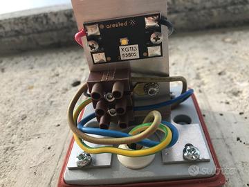 Corpo in alluminio pressofuso, diffusore in vetro trasparente, grado di protezione IP65, 3° Convex Lens, bianco caldo 3000K, potenza led 1,1W/100÷240V, totale potenza 2,5W.