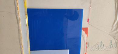 Fogli in Plexiglass originale colorato opaco mm.3 colore: giallo, arancio chiaro e scuro, blu, marrone, rosso, viola chiaro e scuro, verde chiaro e scuro.