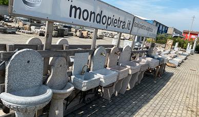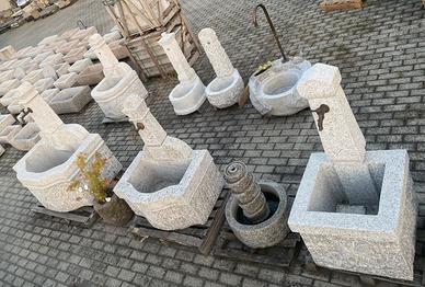 Sono in granito naturale autentico, di colore beige, rosa o grigio, NON sono di cemento, graniglia o polvere di marmo, non soffrono il gelo, ideali per esterni.