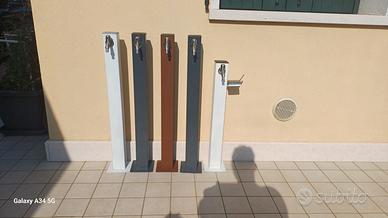 Fontane a colonnina in acciaio inox oppure colorate con rubinetto, ideali per giardino, terrazza e spazi esterni.