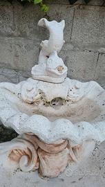 Fontana da esterno con pesce e conchiglia in cemento. Misure: 100 cm h, 70 cm profondità, 72 cm larghezza Senza kit idrico