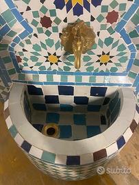 Come da titolo cedo fontana da esterno realizzata interamente a mano in mosaico stile arabo , con rubinetto e sifone per lo scarico perciò tranquillamente collegabile all’impianto della rete idrica domestica. Solo ritiro a mano
