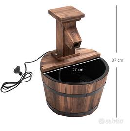 Fontana da Giardino Decorativa a Cascata con Secchio in Legno, Legno di Pino + Metallo, Marrone Scuro, Ø27 x 37 cm