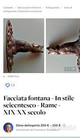 Vendo vecchia facciata fontana in rame come da foto. Preso su catawiki dove era valutato 150-200 euro