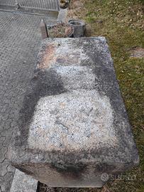 Blocco in granito usato in origine come contrappeso. Ideale per fare una fontana poiché bucato lungo tutto il suo spessore in 2 punti. Antico e scolpito a mano Misure H 95 cm, larghezza 74, profondità 40 Ideale anche come base per tavolo.