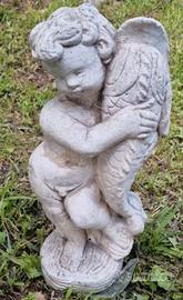 Bellissimo Angioletto abbracciato a un pesce da dove esce l'acqua, in pietra, alto circa 50 cm, fontana da giardino anni 70 come da foto, non trattabile, no affaristi e perditempo, scrivere in privato per altre informazioni.