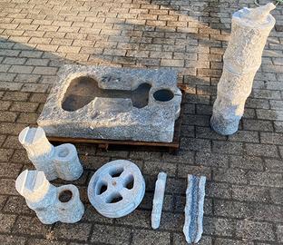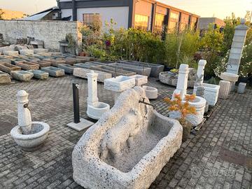 E' scolpita a mano da un massello di granito naturale autentico, di colore rosa, NON è di cemento, graniglia o polvere di marmo, non soffre il gelo.