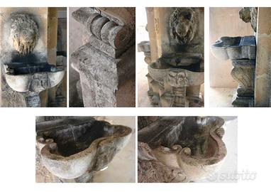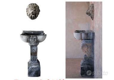 Fontana in Pietrite anticata scolpita interamente a mano e anticata con tecniche tradizionali.