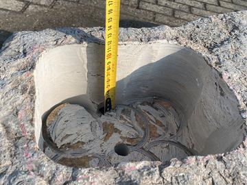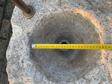 E' ricavata da un antico mortaio di pietra. NON è di cemento, graniglia o polvere di marmo, non soffre il gelo.