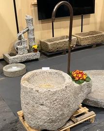E' scolpita a mano da marmo autentico di vari colore, NON è di cemento, graniglia o polvere di marmo, non soffre il gelo.