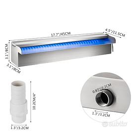 【DIMENSIONE FONTANA PISCINA】 - Dimensione totale: 17,7" x 4,5" x 3,1" (L x W x H). Diametro interno connettore: 1,3" (32 mm). Lunghezza connettore: 0,87" (22mm).