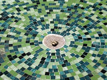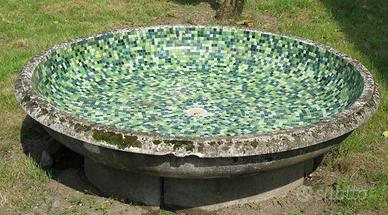 Vasca per fontana da giardino in cemento e tessere di ceramica. Prima metà del 1900. Diametro: cm 183