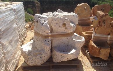 Vendesi fontane in pietra anticate, da 151 kg a 240 kg, disponibili in vari formati. Inoltre offriamo un servizio trasporto con gru a domicilio a costo agevolato in tutta la Regione Lazio. Contattateci per preventivi e consulenze. Il prezzo esposto si intende a fontana ed è IVA INCLUSA. TENIAMO A PRECISARE CHE A PATRICA (FR) ABBIAMO SOLO UN'ESPOSIZIONE. D'AVANZO PIETRE DIRETTAMENTE DA TRANI.