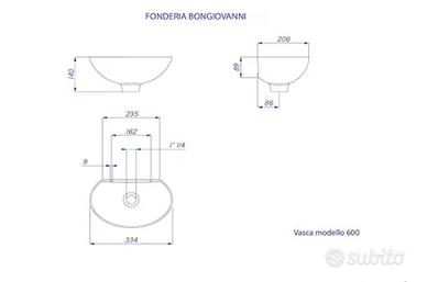 Fonderia Bongiovanni Vasca a Muro Fontanella da Giardino Modello 600 Color Antracite L=33cm