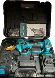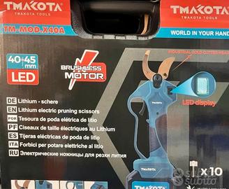 Ecco la forbice da potatura a batteria piu grande e potente in casa makota!! Apertura di taglio di ben 45mm Motore brushless per una maggiore autonomia e grande potenza di taglio Lame in acciaio per un'ottima durevolezza dell'affilatura Regolazione dell'apertura delle lame: 45mm 35mm Il kit comprende; -1 forbice da 45mm -2 batterie da 6000mAh e 68V -1 caricabatterie -kit di utensili -olio per lubrificazione delle lame -pietra per affilatura delle lame DISPONGO DI TUTTII PEZZI DI RICAMBIO ORIGINALI E OFFRO ASSISTENZA POST VENDITA VENDITORE AFFIDABILE PER INFO GIULIO 3347425423