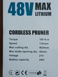 forbice da potatura due batterie e caricabatterie più kit manutenzione